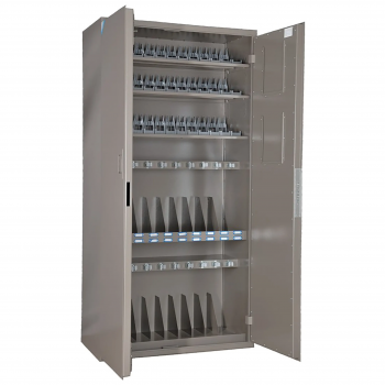 Сейф ОШ-20 АКСУ-39 ПУ - армейский сейфовый шкаф для хранения оружейного арсенала из 20 автоматов АКСУ и 39 пистолетов ПМ, патронов и магазинов. Подходит для оборудования оружейных комнат.