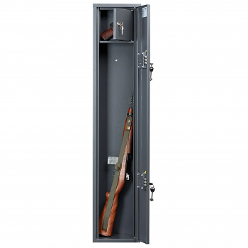 Недорогой вариант для обеспечения требований законодательства по хранению оружия. 2 замка на внешний дверце + замок на дверце для хранения патронов. Достаточно компактный.