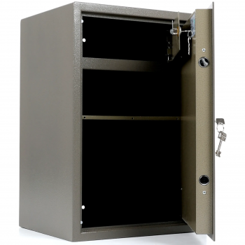 Крепкая, толстая дверь. Сам сейф тяжелый. Очень вместительный. Качественный замок. Цена соответствует качеству. Есть внутренний отдел, который также закрывается на ключ.