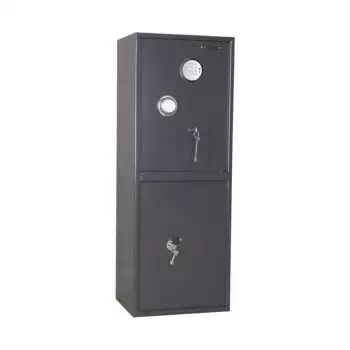 - верхнее отделение запирается на электронный замок, нижнее на ключевой;