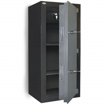 - корпус сейфа имеет усиленный двухслойный сварной стальной каркас, выполненный из листовой стали и заполненный специальным бетоном;